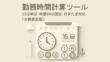 - 本ツールは概算の目安です。最終的な勤怠の確定は各社の就業規則・システムに従ってください。